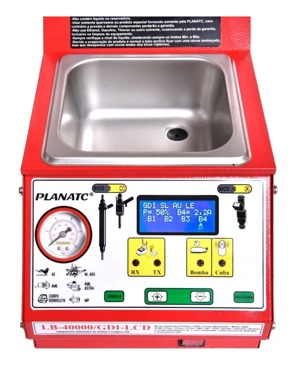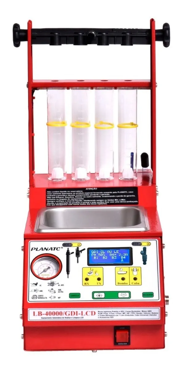A LB-40000/GDI-LCD tem como objetivo testar e limpar integralmente os bicos, NOVAS FUNÇÕES: TESTE DO BICO PIEZO ELÉTRICO – Módulo Pulsador Opcional, DESCARBONIZAÇÃO DE BICOS COM ROTAÇÃO DE 4000/6000/8000/10.000 RPM (este teste necessita da estação de descarbonização – Opcional – Uso fora da máquina), TESTE DE VÁLVULA SOLENÓIDE DO CÂMBIO AUTOMÁTICO E COMANDO DE VÁLVULA, ANÁLISE DE PISTA (corpo de borboleta), ANÁLISE DO CONSUMO DO MOTOR (corpo de borboleta), ANÁLISE DE FOLGA DA ENGRENAGEM (corpo de borboleta);
